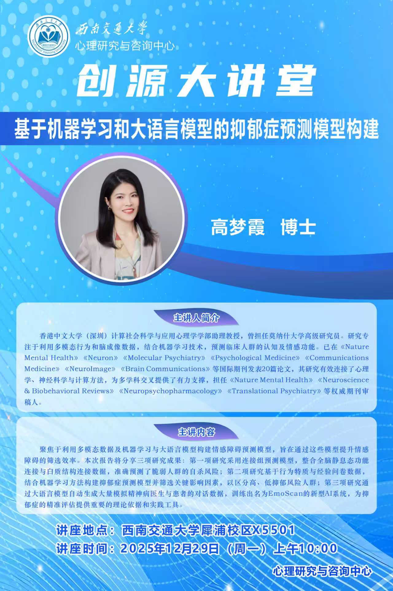 题目:Gamma-Rays and Gravitational Waves from Millisecond Pulsars: Magnetospheric Physics and the Galactic Center Excess主讲人:黄晓渊 中国科学院紫金山天文台研究员时间:2025年12月26日(周五)上午10 :00地点:犀浦校区二号教学楼2539会议室主持人:辛玉良 副教授简历:黄晓渊,中国科学院紫金山天文台研究员,博士生导师。2013年获中国科学院大学天体物理博...